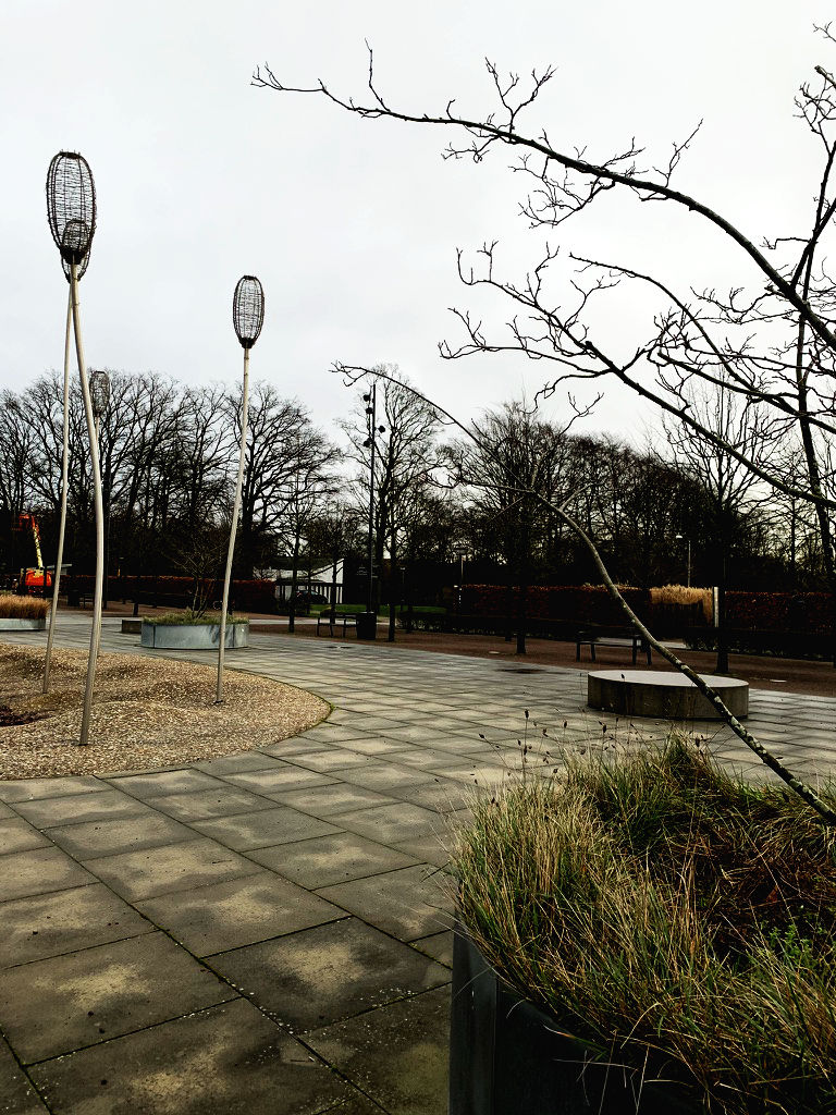 I mitt stilla sinne föreställer jag mig en grönskande park. Gräs. Vackra planteringar av praktfulla blomster. Ett porlande vattendrag. En oas, en stilla och vilsam plats men samtidigt en nod för människors vägar att korsas och kanske förgrenas. Genom dessa bilder har jag försökt att hitta nya sätt att betrakta parken på. Nya uttryck och nya syften. Den nya parken.
