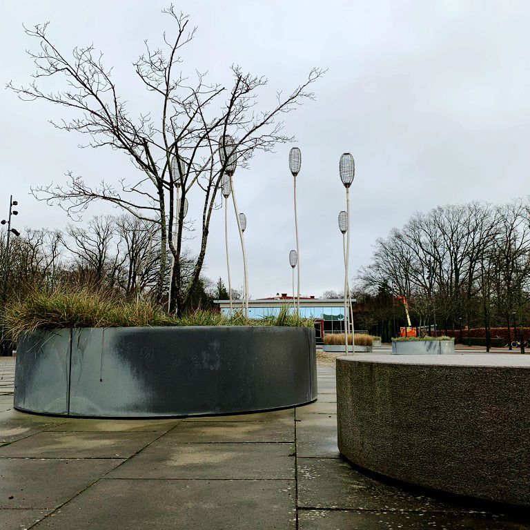 Den stenlagda parken: jag ville genom detta perspektiv framhäva den hårda och ”moderna” formen av park som breder ut sig i städer. Här är hårda material som sten och metall dominerande som i kombination med ståtliga gräsväxter ger parken ett stilrent (men kanske formellt?) uttryck.