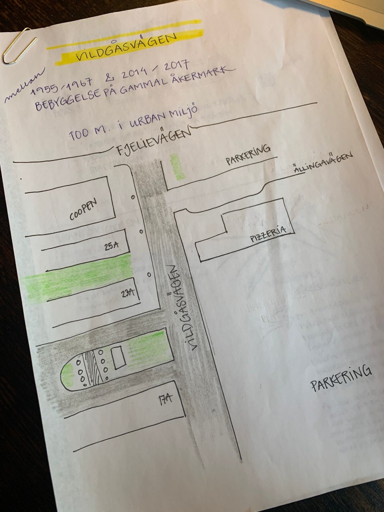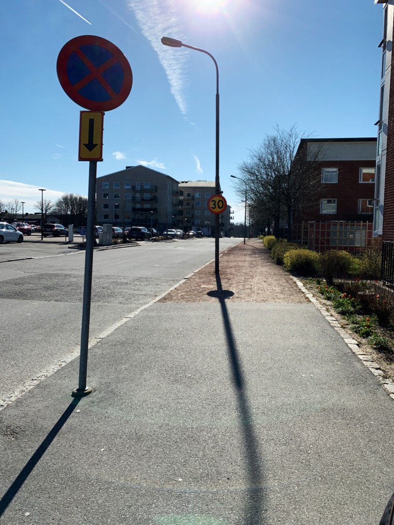 Att stanna upp på en plats som är bekant gör en medveten. Det har fått mig att lägga märke till saker jag förut inte lagt märke till. Gatan är i allra högsta grad en transitplats. Det är en tydlig och ”vältrafikerad” passage mellan de lokala tjänsterna såsom mataffär, busshållplats, studentboende, parkering restaurang och bostadshusen. Det finns ett tydligt flöde av rörelse mellan bostadshus och de samhällstjänster som går att nyttja i området.