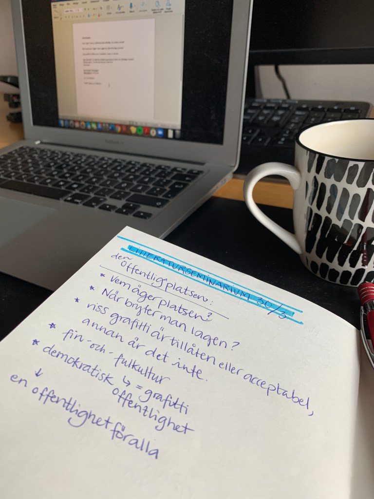 Under litteraturseminariet lyftes många intressanta trådar. Under processen har det varit svårt att koppla aktivismen till lärargärningen – hur kan jag arbeta med gatukonst med mina högstadieelever? Ska jag låta eleverna arbeta med saker jag själv tycker är otroligt obekvämt? Ja, kanske – men under försiktiga och reviderade former.