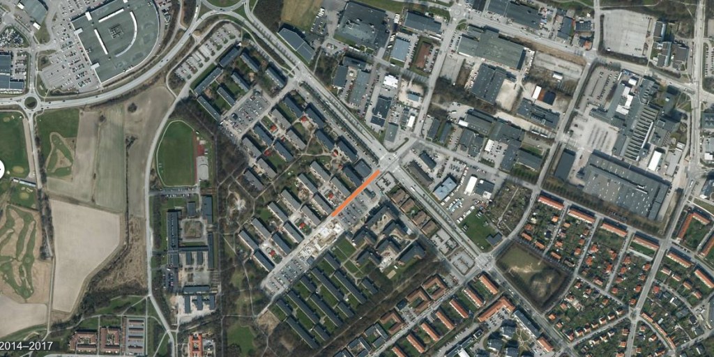 Stråket jag har valt att använda ligger inom området för ett stort och attraktivt bostadsområde i utkanten av Lund. Attraktiviteten kan förklaras av de ständigt uppsatta ”till salu”-skyltarna och omfattande flödet av människor. Området upprättades under sextiotalet då den existerande åkermarken fick ge vika för låga tegelhus. Fasaderna domineras av rött tegel med stora fönster som skvallrar om ett generöst ljusinsläpp.