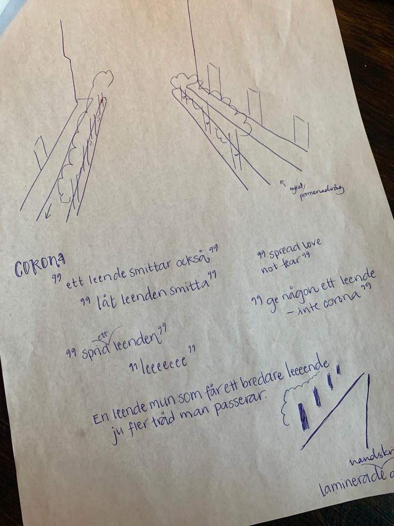 Andersson menar att konstens uppgift är att vara provokativ och oförutsägbar (Rådjur och raketer: gatukonst som estetisk produktion och kreativ praktik i det offentliga rummet, 2006; 38). Mitt budskap kan anses vara provocerande – vill jag uppmana människor att sprida smitta? Är det för tidigt att använda Corona-krisen till min aktivism?